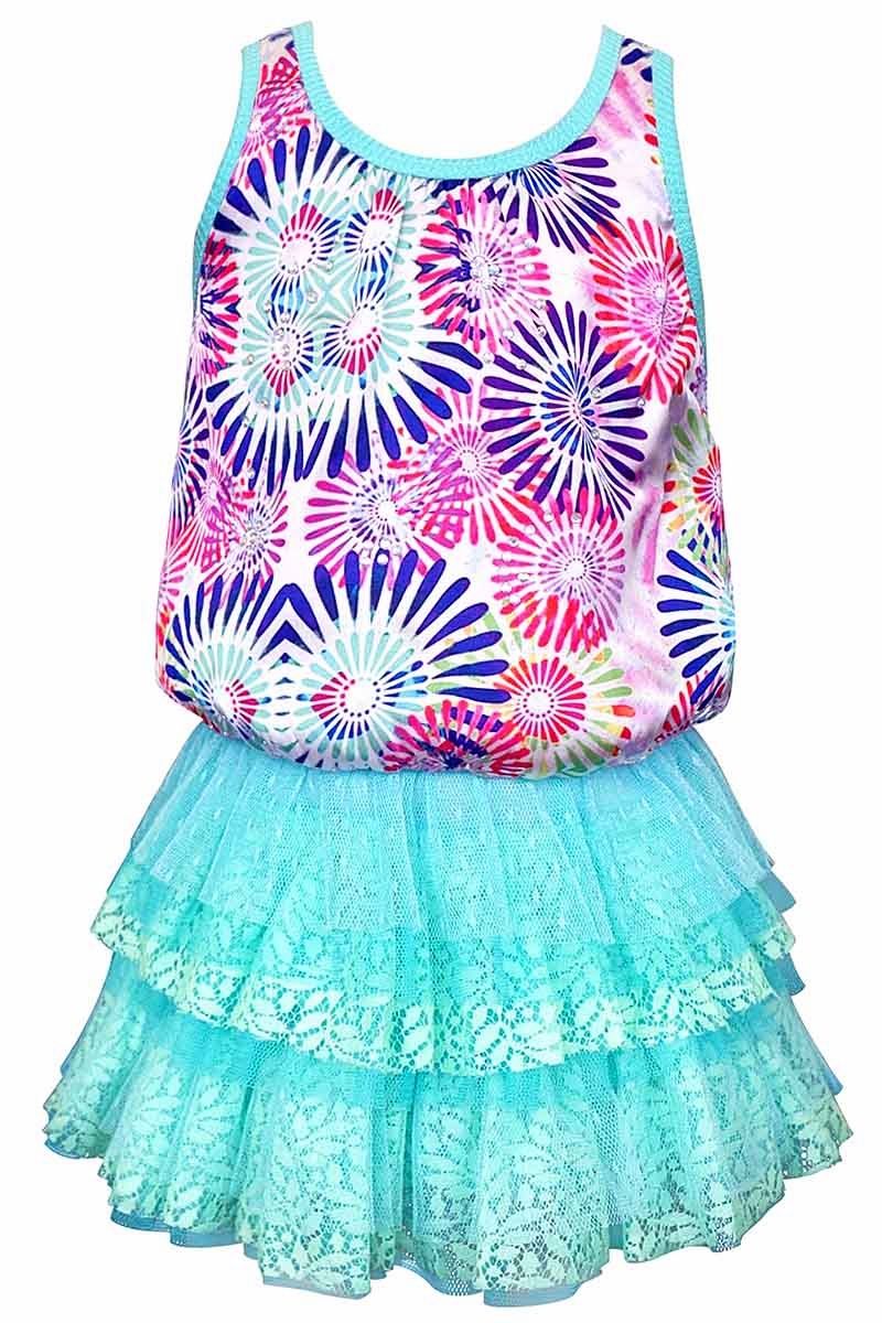 - Layered turquoise mesh & lace skirt